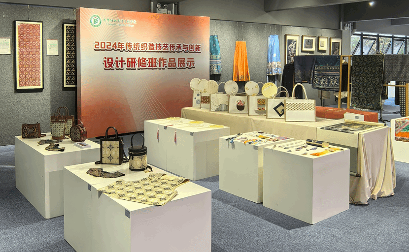 据悉,本次培训由文化和旅游部主办,在四川省文化和旅游厅指导下由我校必赢766net手机版承办。培训为期三十天,邀请了中国织锦工艺大师、省级蜀锦织造技艺大师、以及设计、工艺等相关领域的专家作为培训导师。培训内容涵盖织造产品设计方法、机织物织造技艺、织造非遗技艺的国际发展现状、传统缫丝技艺、现场参观调研、产品创新实践等多个模块。在导师们的悉心指导下,学员们结合课程内容与地域特色、民族特色,设计并制作出近百件蜀锦蜀绣的创意作品。