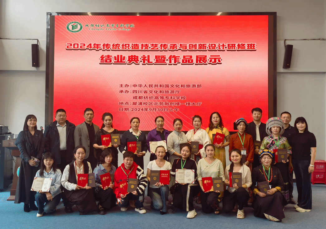 9月30日,“2024年传统织造技艺传承与创新设计研修班”在我校犀浦校区圆满结业。继续教育中心隗送爽,我院党政班子及教师代表出席结业典礼。