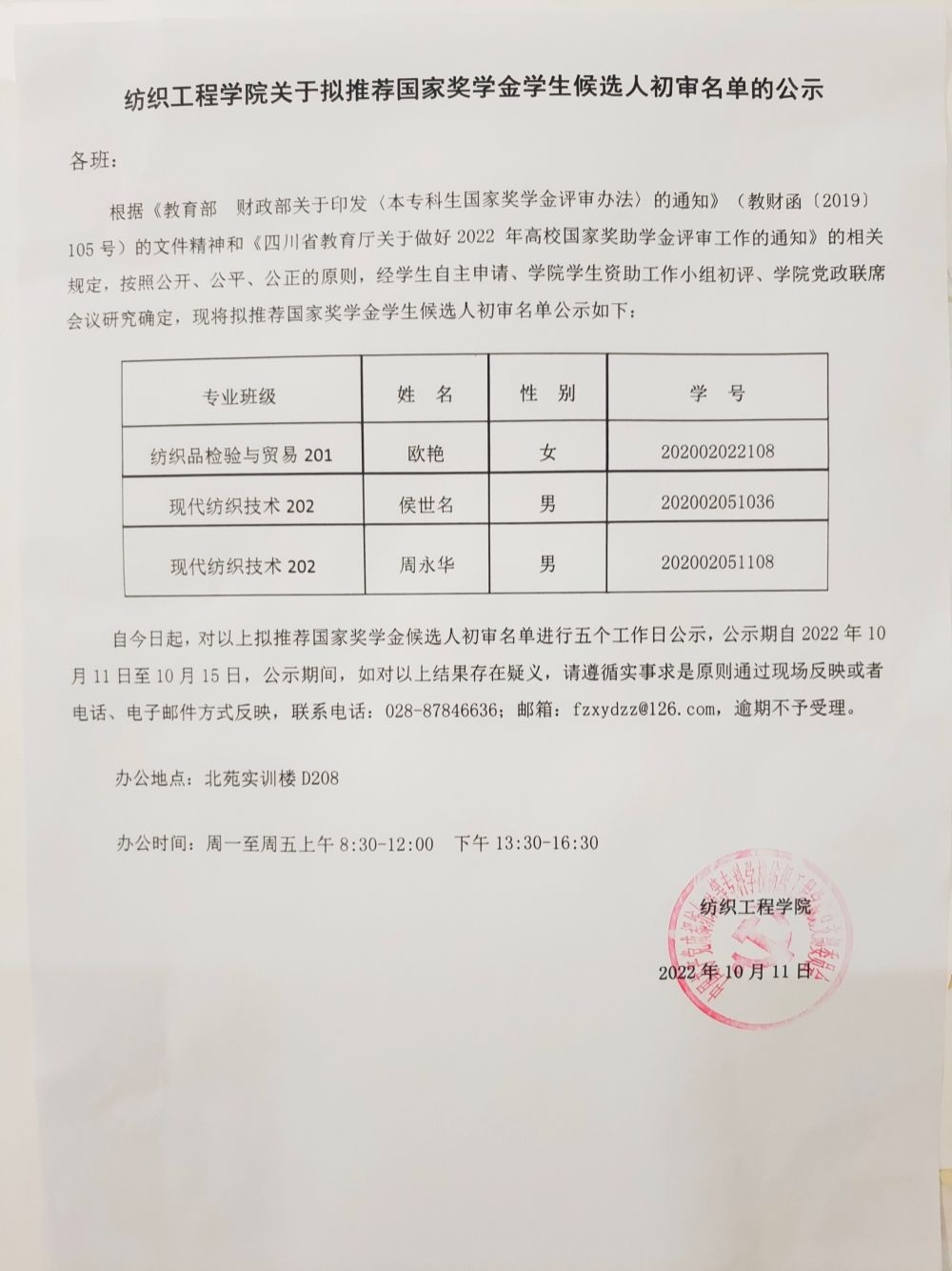 必赢766net手机版关于拟推荐国家奖学金学生候选人初审名单的公示