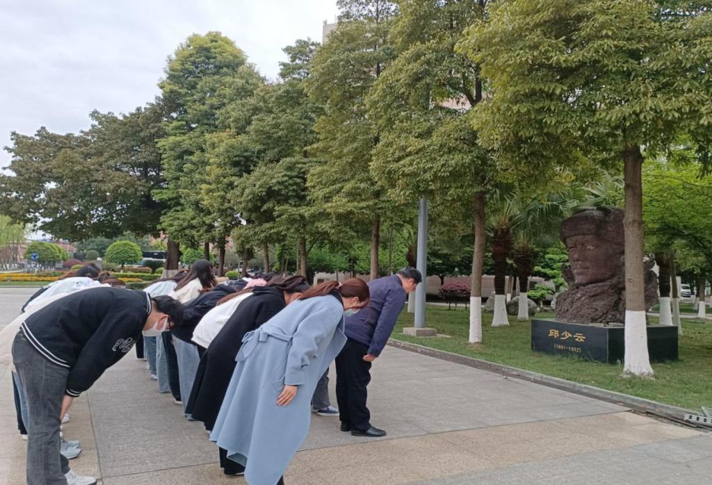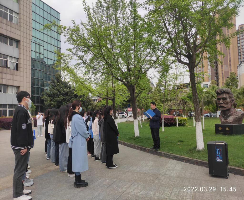 3月29日下午15:00,必赢766net手机版党总支在学校南苑教学楼广场邱少云雕像前和鲁迅雕像前举行“怀先烈 铸初心 强信念 跟党走”主题党日活动,缅怀革命先烈,纪念鲁迅先生。必赢766net手机版党总支书记徐翔、党总支专职组织员兼教工党支部书记陈绍芳、学生党支部书记何孟颖,以及必赢766net手机版在校学生正式党员和预备党员参加此次活动。本次活动由党总支专职组织员陈绍芳主持。