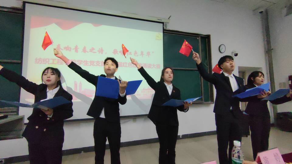 比赛开始前,学院党总支书记徐翔为本次比赛致辞。徐书记说,我们举办这次经典诵读大赛,就是号召全院师生上下高度重视中华文化,中华经典对滋养时代精神的重要作用,不忘初心,牢记使命,铭记光辉历史,坚定理想信念,传承发扬老一辈无产阶级革命家的优秀品质,激发爱党爱国、敬业奉献的为民情怀和责任担当,把先烈们无私奉献、不屈不挠的革命精神发扬推动打造学校“三心双艺”党建工作品牌,推进“四个成纺”的建设,实现早日办成职教本科目标的日常工作中去。全院师生党员要以本次活动为契机,掀起学习宣传贯彻党的十九届六中全会精神和习近平新时代中国特色社会主义思想的新热潮,将红色经典诵读活动融入到党史学习教育中,树立正确的人生观和价值观,做“强国有我”的一代新人,自觉把个人思想追求融入到国家发展和民族复兴当中,把自己的小我融入祖国的大我、人民的大我之中,在新时代的伟大征程中奉献青春,实现价值,共创未来!