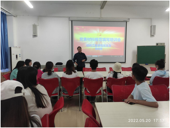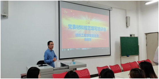 本次培训会的召开,为学院学生入党申请人对党表材料的规范填写以及相关注意事项有了深入了解,使学生对发展党员的标准有了进一步的认识。学生预备党员、现纺201班陈锐同学谈到:“经过这次党表材料规范填写培训会,我深刻认识到了自己现作为预备党员的许多不足之处,例如在学习党的指导思想,并不是了解有哪些指导思想就够了,而是要全面深刻的去体会每一个指导思想在每一个阶段的意义,更要做到理论联系实际。同时不但要在组织上入党而且要在思想上入党,端正态度,实事求是的去填写党表材料,不套用,不抄袭。”学生发展对象、针织201班李忠莲谈到:“作为一名发展对象,填写的党表材料非常多也很复杂,经过听取陈老师针对党表材料中的规范填写和介绍了相关党表材料的写作方法之后,对于自己的党表材料存在的问题都能及时发现并改正过来,比如在写入党申请书时的一些逻辑问题,还有入党志愿不能照搬入党申请书等。党表材料的规范填写是每一个申请入党人员必须做好的。在这一次的学习后,我会更加规范地去撰写、填写党表材料,递交规范的党表材料。”学生入党积极分子、现纺202班邓艳同学谈到:“通过此次培训,我明白了填写党表材料首先要端正自己的态度,对党表材料的填写又有了新的了解,各项党表材料要认真用心的去填写,思想汇报要有实时性和真实性。”