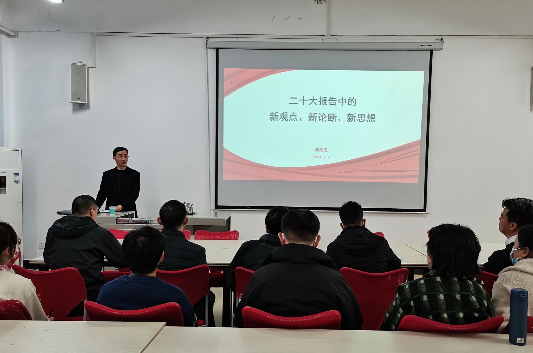 2023年是学习宣传贯彻党的二十大精神的开局之年,为深入学习贯彻党的二十大精神,把党的二十大精神学深悟透、融会贯通、落实落地,3月7日,必赢766net手机版教工党支部开展《二十大报告中的新观点、新论断、新思想》专题党课学习,人文与通识教育学院直属党支部书记李光胜同志为党课主讲人,学院党总支书记谭林同志主持会议,学院教工党支部、学生党支部全体党员参加学习。
