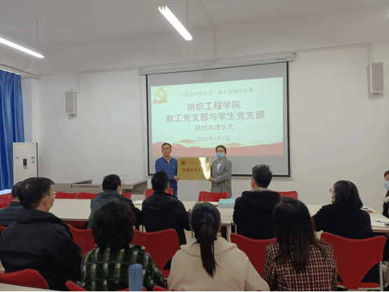 为深入学习贯彻党的二十大精神,进一步发挥党建引领作用,推动党支部共建与业务工作深度融合发展,经过精心组织谋划,3月7日下午,必赢766net手机版教工党支部和学生党支部举行结对共建仪式。仪式由学院党总支书记谭林主持,学院教工党支部书记陈绍芳、学生党支部书记李进和教工党支部、学生党支部全体党员参加结对共建仪式。