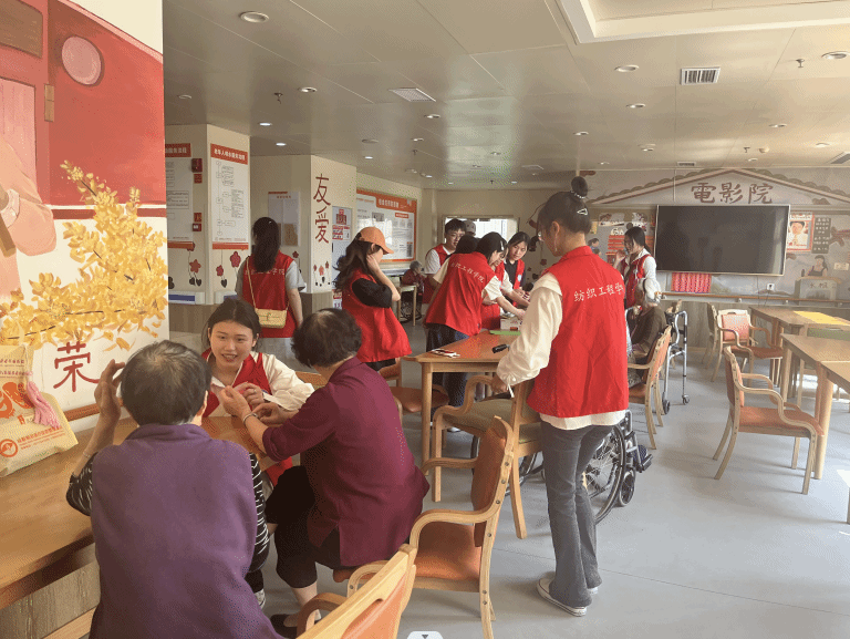 学生入党积极分子根据老同志的需求,与学院益路至善公益社、缂织社等协会的同学们一起为老同志编织了特色毛线小花,并结合学院特色开展活动。活动开始,各位学生入党积极分子首先给老同志们送上亲手编织的流苏作为见面礼物,祝愿他们身体健康,安享晚年幸福生活。在活动开展中,各位学生入党积极分子带领老同志一起制作中国特色的手工剪纸和折纸,老同志们都非常认真快乐的学习。