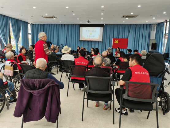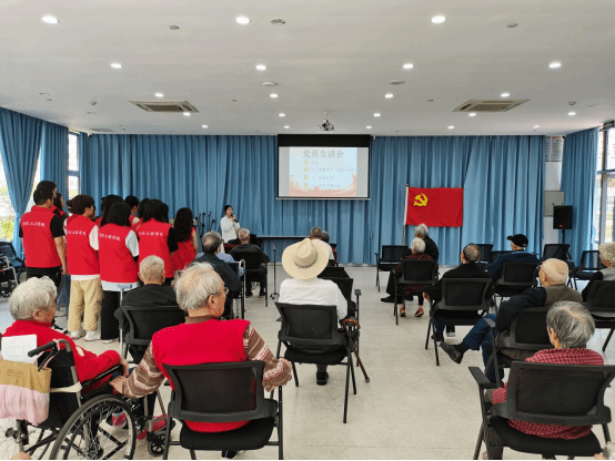 在开展志愿服务活动前,养老中心负责人为老师和同学们讲解了本次志愿服务活动的注意事项,要求大家一定要特别注意老同志的安全和尊重老同志的隐私。本次志愿服务活动分成两部分,一是师生党员、入党发展对象与养老中心老党员同志召开党员生活会,二是学生入党积极分子与其他非党员老同志开展剪纸和折纸活动。