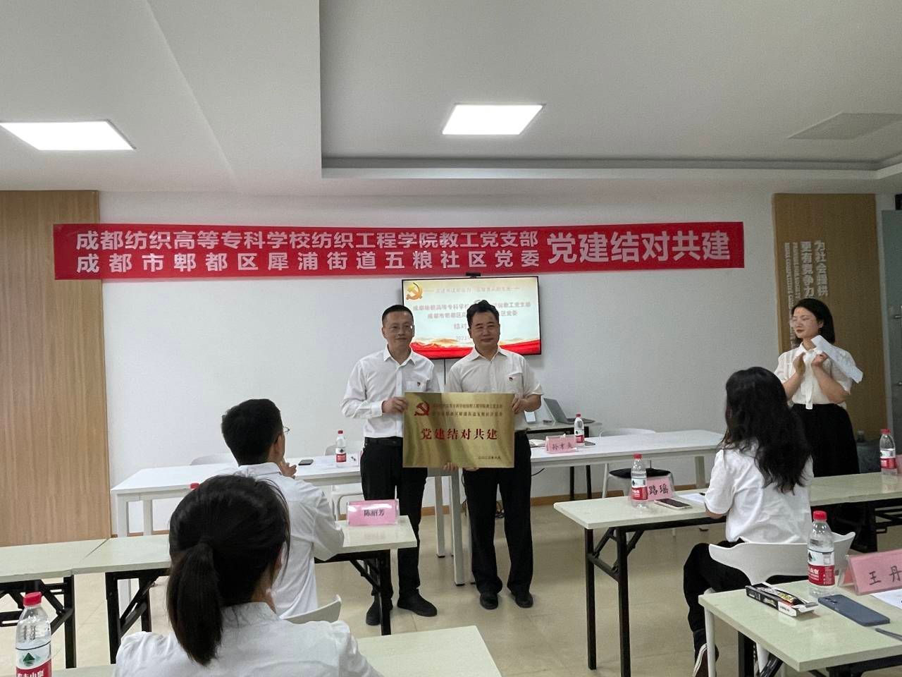 为深入学习贯彻党的二十大精神,全面落实新时代党的建设总要求,着力加强基层党建,发挥基层党组织的引领作用,进一步搭建学校与社区的交流平台,进一步探索和创新党建工作模式,实现“以共建促党建,以党建促业务,以业务强党建”的良性循环,6月30日上午,必赢766net手机版教工党支部前往成都市郫都区五粮社区党群服务中心,与五粮社区党委举行党建结对共建仪式,签订党建结对共建协议书。必赢766net手机版党总支书记谭林、五粮社区党委书记孙才夫和两个支部的部分党员参加结对共建仪式。