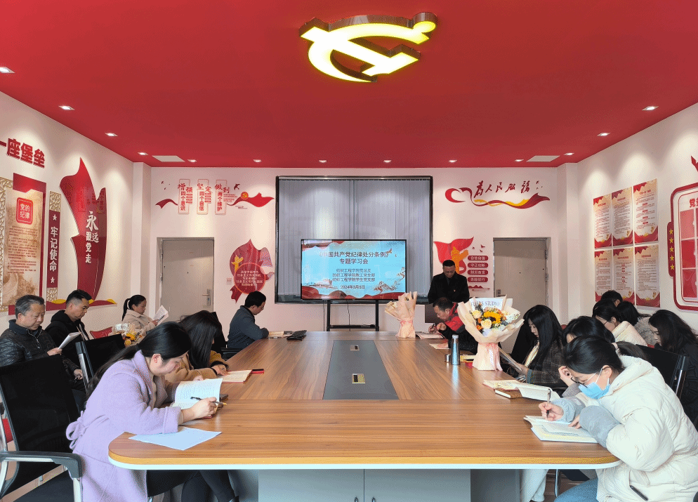 3月5日,必赢766net手机版党总支组织全体党员对新修订《中国共产党纪律处分条例》进行集中学习,深化党员对《条例》的学习理解,进一步增强党员法纪观念,切实增强贯彻落实《条例》的高度自觉。