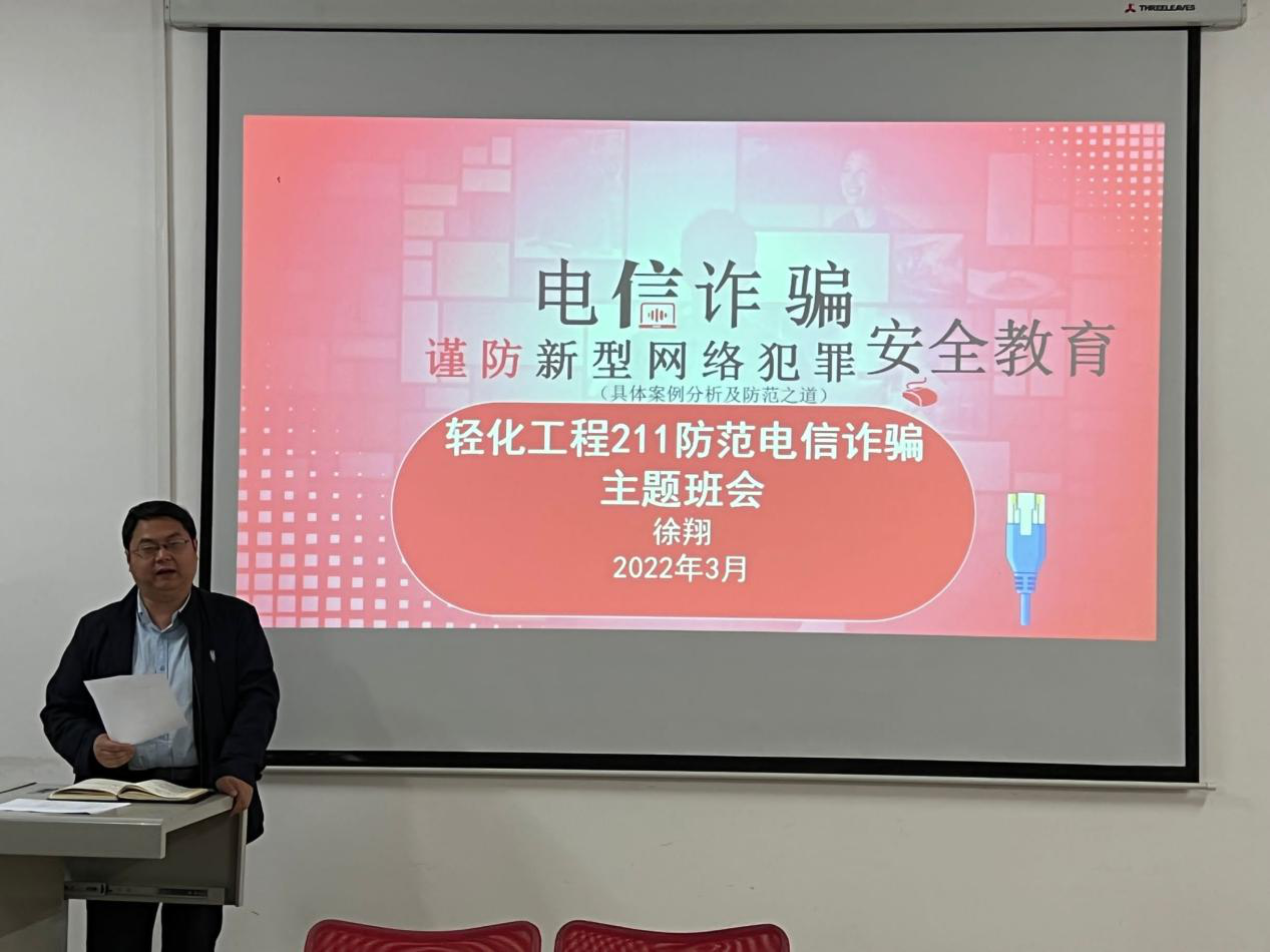 为提高学生安全上网意识,预防网络诈骗,3月25日下午,必赢766net手机版轻化工程211本科班在北苑实训楼D204多功能教室开展“预防网络电信诈骗”主题班会,本次主题班会由学院党总支书记、轻化工程211班辅导员徐翔主持召开,轻化工程211班全体学生参加。