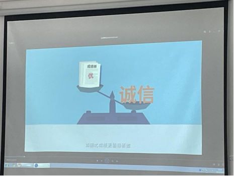 随后,大会组织同学们观看了关于诚信考试的宣传动画视频,生动有趣的动画片向同学们传达了诚信考试的重要性,明礼诚信是立身处世之本,是走向社会的“通行证”,所以说“诚信”远比考试结果更为重要。