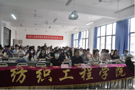 会上,学生会执行主席赵铭首先宣读了《成都纺织高等专科学校考场规则》和《成都纺织高等专科学校学生违纪处分条例》中有关考试违纪、作弊者的处分条例,赵铭同学对有关考试的各项规章制度和考试违纪、作弊行为应受处分进行了详细的讲解。