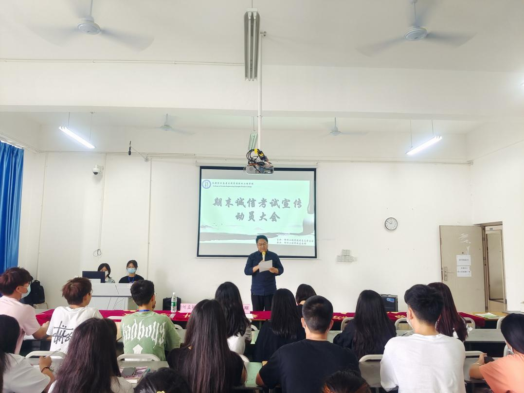 2022年5月31日中午12:30,必赢766net手机版在北苑实训楼C203举行了诚信考试宣传动员大会,必赢766net手机版党总支书记徐翔、学院党总支副书记兼团总支书记罗娅、学院学生党支部书记何孟颖出席了大会,必赢766net手机版大一大二各班学生代表以及学院第35届、36届学生会主席团成员、第36届学生会全体干部参加了大会。