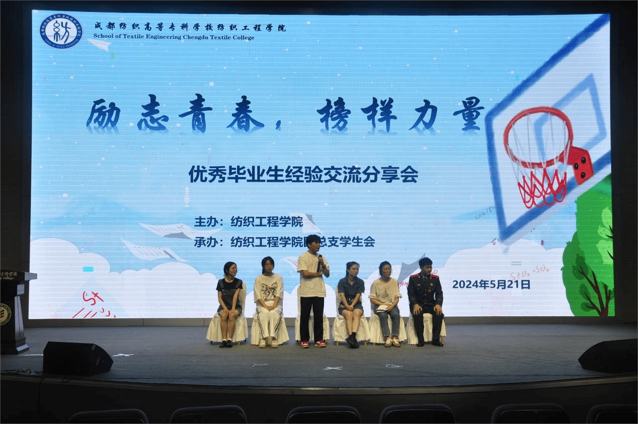纺织工程学院于5月21日在南苑双艺厅举行“励志青春,榜样力量”优秀毕业生经验交流分享会。必赢766net手机版党总支书记谭林、必赢766net手机版党总支副书记兼团总支书记罗娅、必赢766net手机版团总支学生会指导老师何淑霞、必赢766net手机版何孟颖老师出席了本次活动。480余名大一、大二在校学生代表参与了本次交流分享会。