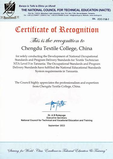 与此同时,学校深入了解了坦桑尼亚在皮革和纺织领域的发展现状和人才需求,引入了《纺织服装材料》《纺织品跟单》等优秀课程在线资源,助力推动坦桑尼亚相关领域的教育和人才培养工作。同时,还为坦桑尼亚教育部开发了纺织技术员5级和皮革技术员5级两个职业岗位标准,进一步推动了国际教育的交流与合作,为全球教育交流与发展贡献中国智慧和力量。