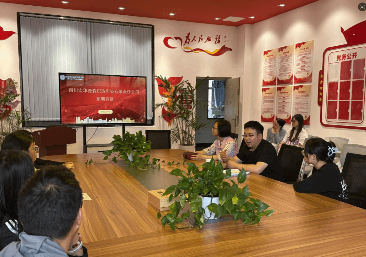 4月11日下午,四川宏华源森织造印染有限责任公司在学院D206进行了专场招聘宣讲,企业总经理详细介绍了企业文化与岗位职责,并与毕业生们面对面交流、现场面试,为同学们提供了丰富的就业岗位。