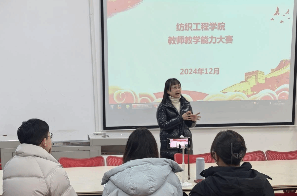 大赛评审团队由学院院长宋雅路、党总支书记谭林、副院长胡雪梅、教研室主任、教学督导以及各专业负责人共同组成。本次大赛共有五个团队参与,参赛课程分别是《大数据应用》《产业用纺织品》《纺织材料》《针织技术》和《数字印染与后处理》。各团队围绕纺织工程领域的前沿技术和热点问题,精心设计了教学内容和方法,充分展示了必赢766net手机版教师的教学水平和职业素养。在比赛中,《大数据应用》团队教师张洵,以大数据技术应用为核心,巧妙融合思政元素,采用一体化教学方法,生动展示了大数据在纺织领域的应用实例和广阔前景。《产业用纺织品》团队的教师熊晨,则以实用型产品为引入,采用讲授+案例+情境教学法,详细介绍了产业用非织造产品的制备技术。其他参赛团队也通过不同的教学方法和手段,展示了各自的教学特色和优势。评审团队从教学内容、教学方法、教学效果以及课程思政融入情况等多方面对各课程团队进行了综合评价,并指出各团队今后努力的方向。接下来,学院将进一步推动教育教学改革,继续培育优秀课程团队并推荐参加校级教学能力大赛。